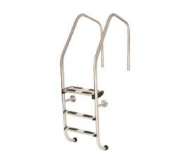 Standard ladders for residential & commercial swimming pools, made of superior quality stainless steel AISI 304 or AISI 316. Stainless steel tubes are Ø 43/38. Steps in Stainless Steel and plastic. Its perfect design assures anti-slip security. They includes: Non-slip steps, anchors with earth connection, screws and trimming parts.